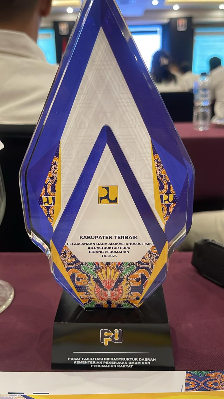 Penghargaan diserahkan oleh Krisno Yuwono, ST. MT. Kepala Pusat Fasilitasi Infrastruktur Daerah pada Acara Rapat Kerja Pelaksanaan DAK Fisik Infrastruktur PUPR (Bidang Jalan, Irigasi, Air Minum, Sanitasi dan Perumahan dan Permukiman) Tahun 2024, pada Senin, (01/07/2024) di Hotel Lombok Raya, Nusa Tenggara Barat.